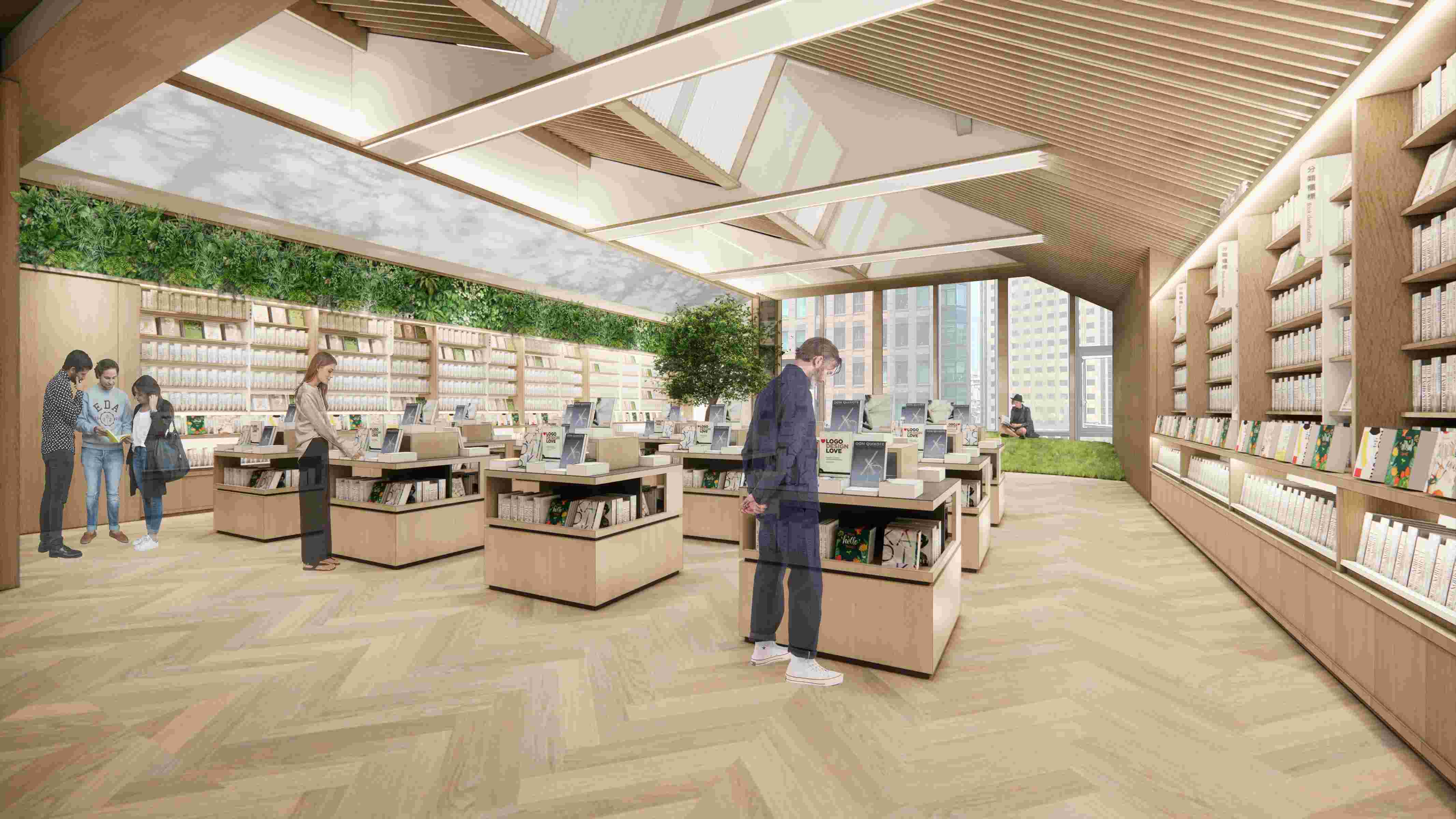 「玲廊滿藝」以書畫相映,「書畫博客」打造藝術作品與實體書店共生的獨特空間;「閱讀綠境」以光影與綠意為靈感,為愛書人營造一處身心放鬆的都會綠洲,猶如徜徉在大地的懷抱中,享受閱讀;「圖像穿廊」匯集漫畫、繪本、圖文類書籍,呼應閱讀視覺化的人文走廊;「數位閱讀體驗區」整合虛實科技,建構電子書與有聲書的沉浸式體驗專區,邀請讀者享受閱聽新風潮;「數位書櫃、AI互動」串連博客來線上的書海資源,提供最新暢銷書榜,創造智慧選書與閱讀互動的全新體驗。